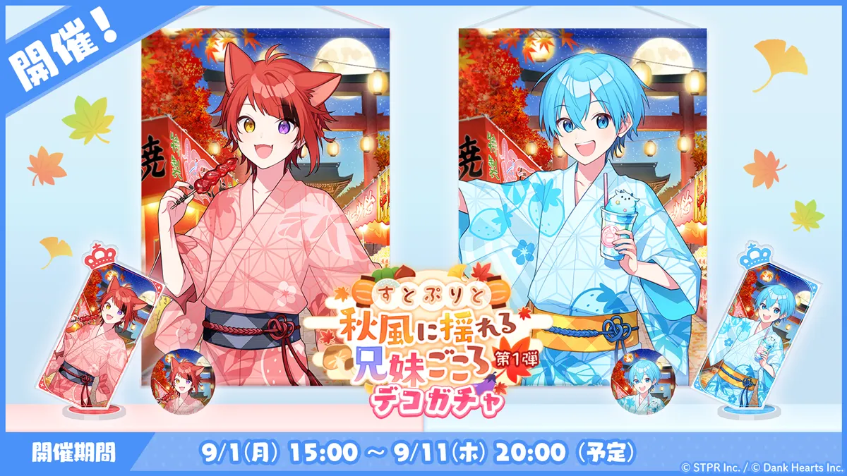 本日9月1日(月)より、新たなデコアイテムがピックアップ登場する 「すとぷりと秋風に揺れる兄弟ごころ 第1弾 デコガチャ」 が開催中です!