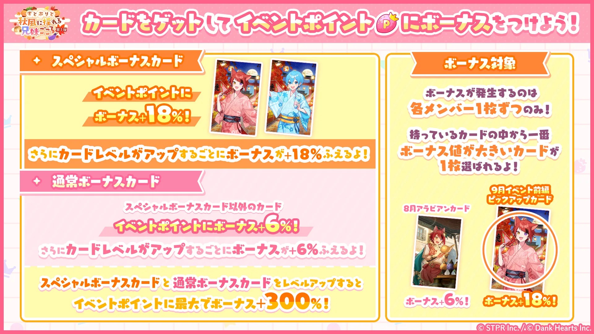 開催月に応じて「通常ボーナスカード」よりもボーナスが高い「スペシャルボーナスカード」が登場します。