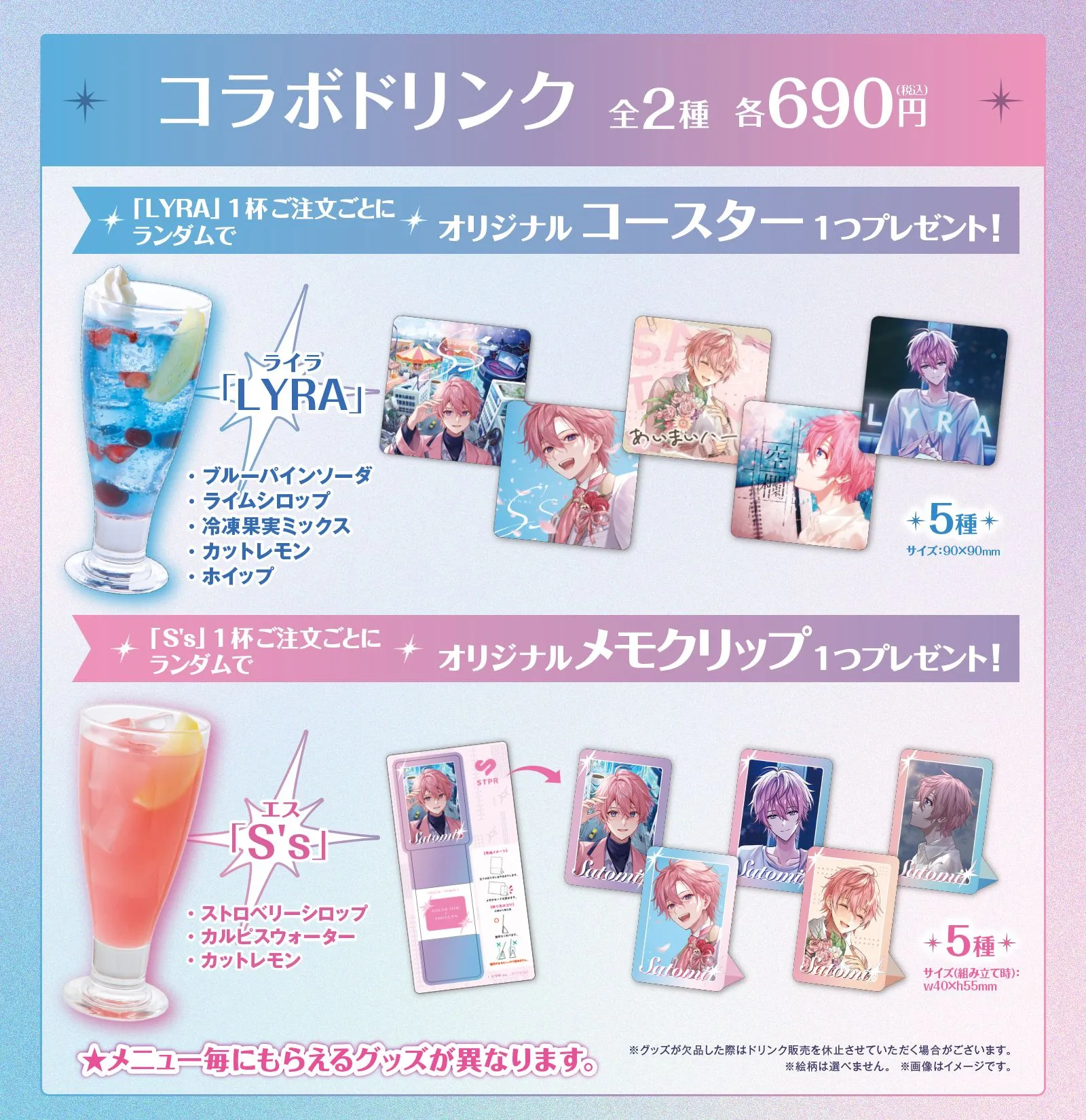 コラボドリンクの販売やオリジナルノベルティプレゼントを実施致します。