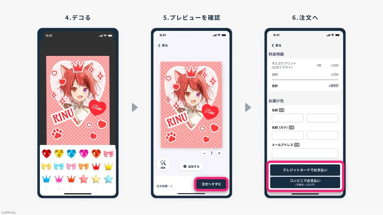 ・注文方法:アプリ上で作成・注文。約10日でご登録の住所に配送されます。