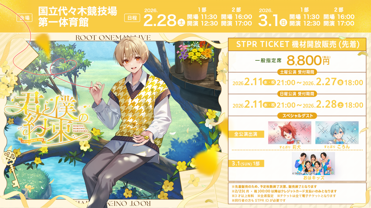 るぅとのワンマンライブ『君と僕の約束 in 国立代々木競技場第一体育館』 のSTPR TICKET機材開放販売が開始2月11日(水・祝)21:00に開始いたしました!