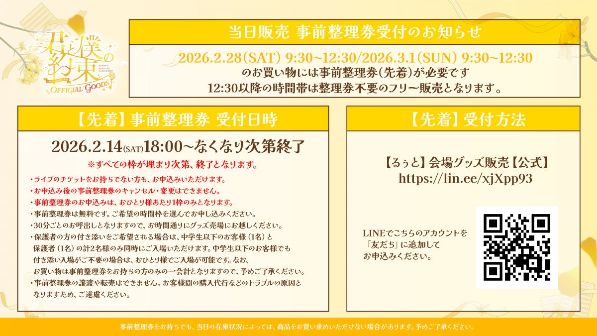 ■当日グッズ販売 事前整理券(先着) 受付のお知らせ