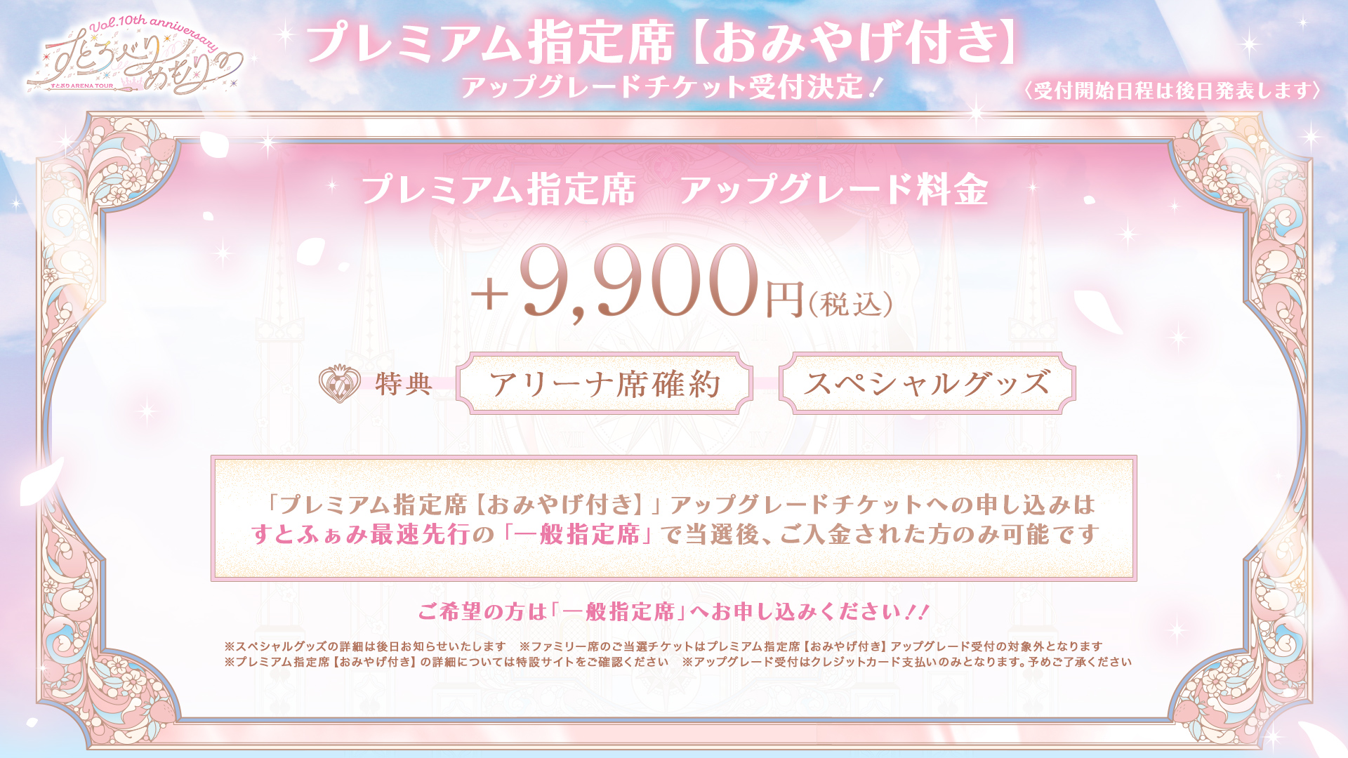 プレミアム指定席【お土産付き】アップグレードチケットへのお申し込みは、すとふぁみ会員最速先行の「一般指定席」に当選後、ご入金された方のみ可能です
